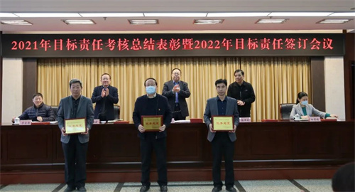 会上,宣读了市直机关工委《关于2021年度工委各部门目标责任考核情况的通报》《关于2021年度工委各部门公务员考核结果情况的通报》,向优秀部门和优秀公务员颁发了奖牌和证书,获得优秀部门的1名负责人代表和2名优秀公务员代表作大会交流发言,各委领导与分管部门单位的负责人分别签订了2022年度目标任务责任书。苏俊良总结通报工委2021年工作情况,安排部署工委2022年工作任务,并对做好全年工作提出总体要求。