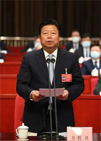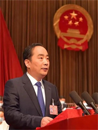 在热烈的掌声中,市长李明远代表市政府向大会作政府工作报告。报告共分为四个部分:2021年工作回顾及过去五年主要成就;今后五年的发展目标和重点任务;2022年预期目标和重点工作;切实加强政府自身建设。