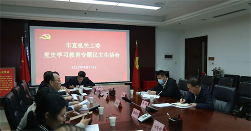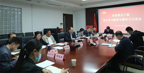 4月15日下午,市直机关工委班子召开党史学习教育专题民主生活会。会议以习近平新时代中国特色社会主义思想为指导,深入学习贯彻党的十九届六中全会精神和习近平总书记来陕考察重要讲话重要指示精神,围绕“大力弘扬伟大建党精神,坚持和发展党的百年奋斗历史经验,坚定历史自信,践行时代使命,厚植为民情怀,勇于担当作为,团结带领人民群众走好新的赶考之路”主题,聚焦中央和省委确定的“五个带头”对照检查内容,深入查摆问题,严肃开展批评和自我批评,进一步增强市直机关工委班子的政治判断力、政治领悟力、政治执行力。市直机关工委常务副书记苏俊良主持会议,市委党史学习教育第四巡回指导组组长张瑞到会指导。市直机关工委班子成员参加,市管其他干部和工委相关部门负责人列席。