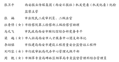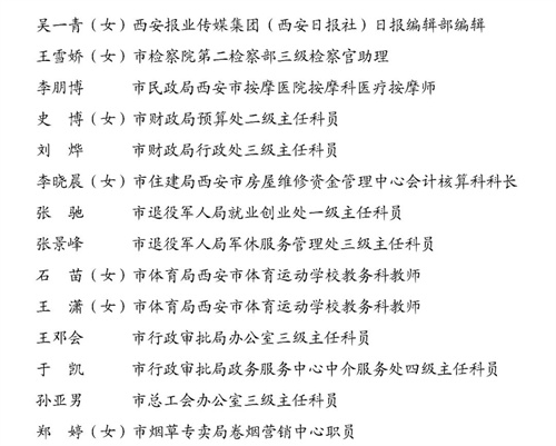 在中国共产主义青年团成立100周年来临之际,市直机关团工委揭晓命名2021年度西安市直机关青年岗位能手(标兵),授予张卫平等8名同志“市直机关青年岗位能手标兵”荣誉称号、吴一青等14名同志“市直机关青年岗位能手”荣誉称号。