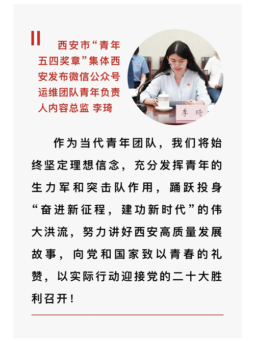 5月30日,市直机关工委召开学习贯彻庆祝中国共产主义青年团成立100周年大会精神座谈会,来自市直机关5个先进集体和个人代表以及基层一线代表张小蔚劳模志愿者服务队先后发言,畅谈学习体会,表达传承光荣传统,立足本职积极进取,为加快国家中心城市建设、谱写西安高质量发展新篇章贡献青春和力量的信心决心。