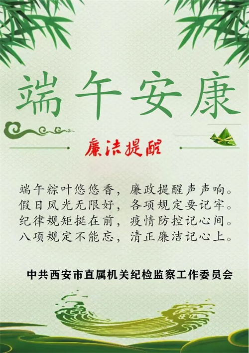 中共西安市直属机关纪检监察工委端午廉洁提醒