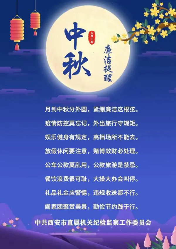 廉洁提醒 / 中共西安市直属机关纪检监察工委中秋廉洁提醒