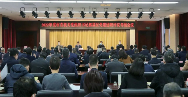 会议采取大会现场述职和书面述职相结合的方式进行,市委党校、市工业和信息化局、市文化和旅游局、市退役军人事务局等10个单位的机关党组织书记进行了大会现场述职,其余党组织书记进行了书面述职。市直机关工委副书记张军利结合日常党建工作督导检查和述职报告情况,对述职对象逐一进行了点评。全体参会人员对88个市直机关党组织书记进行了现场测评。