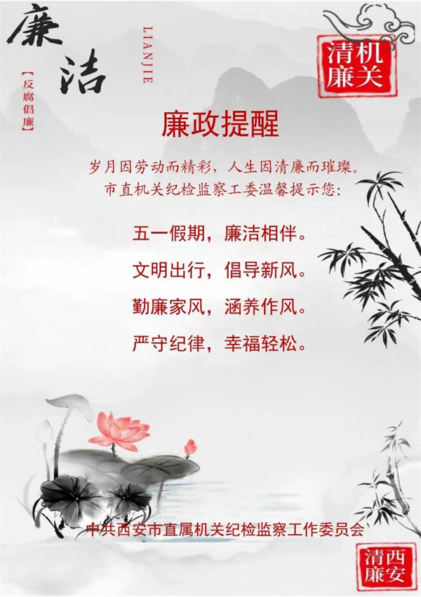 中共西安市直属机关纪检监察工委五一廉洁提醒