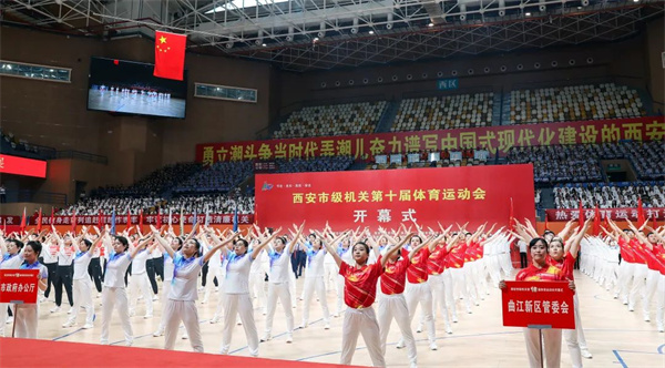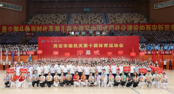 6月28日,市级机关第十届体育运动会开幕式暨“安居杯”广播体操决赛展演在西安城市运动公园体育馆隆重举行。市级机关十运会组委会成员,市级机关各部门、西咸新区和各开发区管委会、市属高校等单位相关领导,机关各单位党员干部代表3000余人参加开幕式。