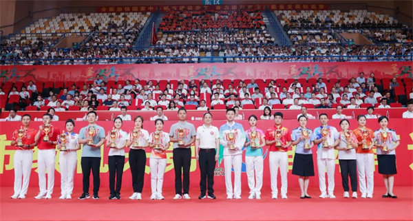 开幕式后,“安居杯”广播体操决赛展演随即举行。经过精彩激烈的比赛,市委办公厅、市政府办公厅、市公安局、市教育局、市税务局5个代表队获得A组一等奖。市人社局、市体育局、曲江新区管委会、西安银行、西安安居集团5个代表队获得A组二等奖,市审计局、市资源规划局、市应急管理局、市城管局、市气象局、市机关事务服务中心6个代表队获得A组三等奖;市金融工作局获得B组一等奖,市地震局、市养老经办处2个代表队获得B组二等奖,市直机关工委、市行政审批局、市地方志办、国家统计局西安调查队、市工商联5个代表队获得B组三等奖。出席开幕式的市级领导为获奖代表队颁发奖杯并合影留念。