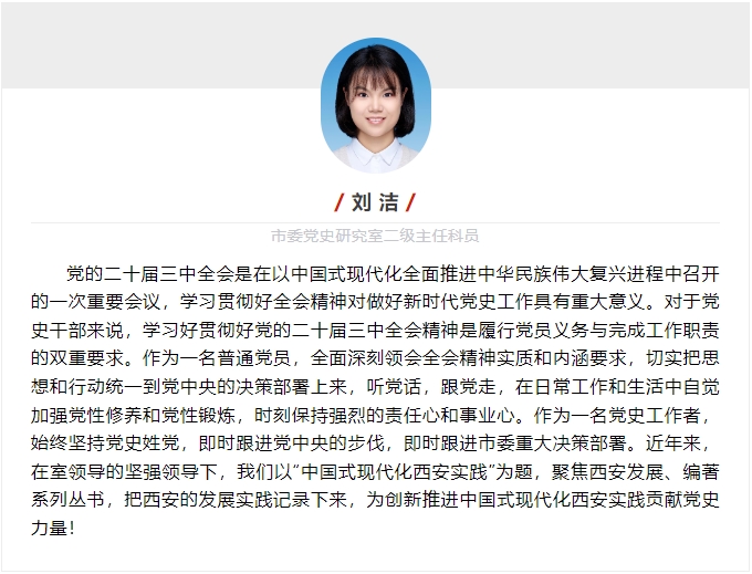 近期,市直机关党组织采取多种形式,迅速掀起学习贯彻全会精神热潮。市直机关工委在西安机关党建微信公众号特别开设“市直机关党员干部热学热议党的二十届三中全会精神”专栏,积极展示机关党员干部学习贯彻全会精神感言感悟,努力营造学习宣传贯彻全会精神的浓厚氛围,进一步推动学习宣传贯彻全会精神持续深入,为奋力谱写中国式现代化西安实践新篇章凝聚力量。