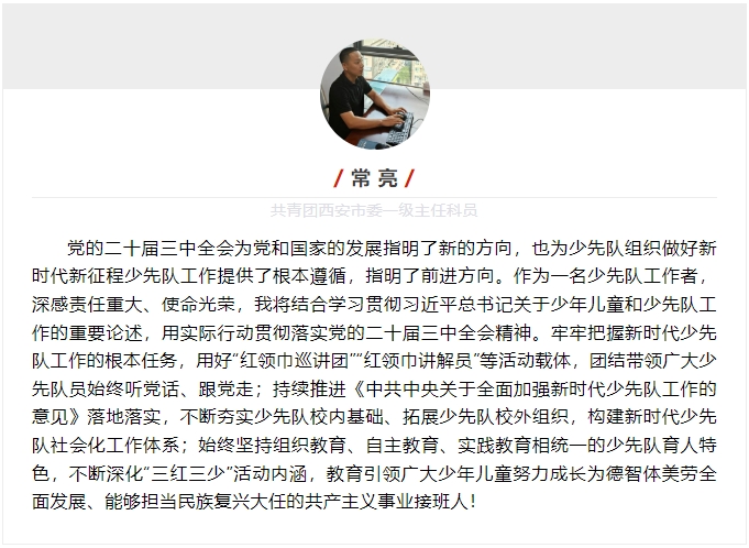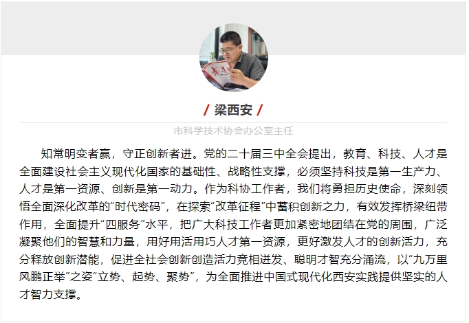 近期,市直机关党组织采取多种形式,迅速掀起学习贯彻全会精神热潮。市直机关工委在西安机关党建微信公众号特别开设“市直机关党员干部热学热议党的二十届三中全会精神”专栏,积极展示机关党员干部学习贯彻全会精神感言感悟,努力营造学习宣传贯彻全会精神的浓厚氛围,进一步推动学习宣传贯彻全会精神持续深入,为奋力谱写中国式现代化西安实践新篇章凝聚力量。